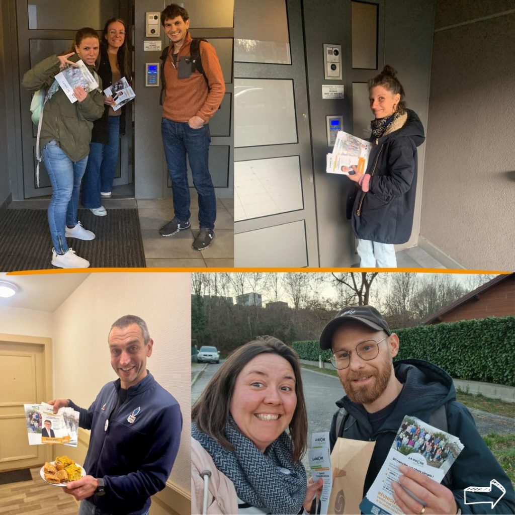 Nous sommes sur le terrain depuis des mois, sur le marché chaque semaine depuis septembre, en porte à porte à votre rencontre ! Et depuis janvier, Marie, Marc, Yves, Claire-Zoé, Laurent, Clémence, René, Jérémie, Clémence et bien d’autres encore sont présents auprès de vous et sillonnent l’ensemble des quartiers de la Roche sur Foron. Merci pour votre accueil et pour vos échanges !